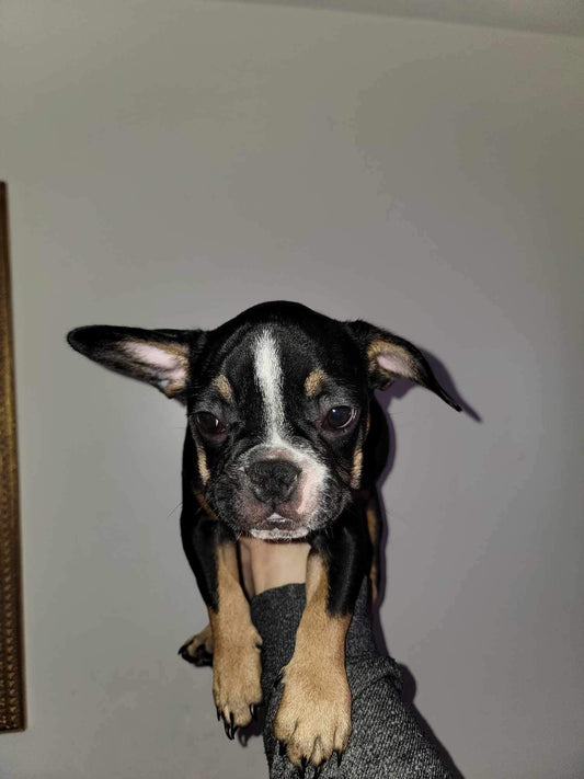 Black tan pied Male French bulldog AKC